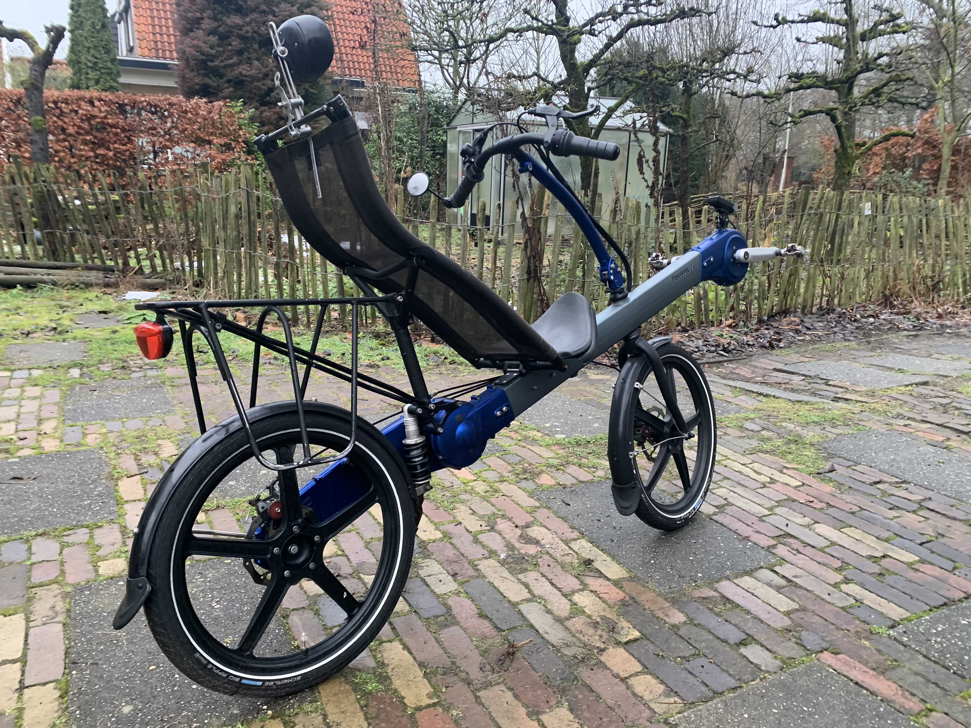 Mooie Greenmachine van 2011. November 2024 beurt gehad en olie ververst. Daarna nog 1000 km gereden, totaal ongeveer 11.000. Maat M Banden bijna nieuw, Schwalbe big Apple Achtervering. Batterijverlichting. Vaste prijs 995 euro