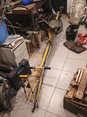 We gebruiken ze niet meer, de laatste twee fietsen die ik gebouwd heb. De ligfiets en de achterste positie op de tandem zijn voor iemand van ong. 183 cm. Voor het besturen van de tandem kun je beter wat langer zijn, het voorwiel is 24 inch. Verschillende zadels en nog wat extra onderdelen. Met de tandem zijn we o.a. naar Spanje v.v. gefietst maar deze wordt nu al een aantal jaar niet meer gebruikt. Fijn als iemand alles zou willen meenemen. T.e.b.