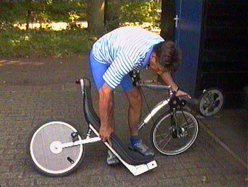 Wat ik nu huidig kan vertellen, is dat deze fiets met liefde gemaakt is. Het originele model deed Bram dus ook niet weg, én zoals ik al zei: een leuke prijs. Ben ik in het bezit van een demonstratie model van de Kanteltrike (met schijfrem om aan een verkeerslicht recht te blijven). Bram vertelde me dat er een twintig-tal Deelbare Lage Racers zijn gebouwd.