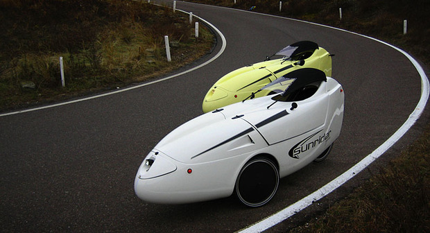 De Sunrider is een velomobiel; een overdekte éénpersoons driewielfiets met een ligfietsaandrijving. De lichtgewicht body biedt hoog comfort en bescherming voor al die natte en winderige dagen. Door de uitstekende aerodynamica van dit spectaculaire voertuig fietst u vaak harder dan op een normale (race)fiets!