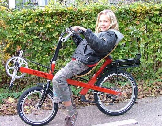 De trots van Altena-bike: een ligfiets ontwikkeld voor kinderen met een lengtemaat vanaf ong. 130 cm tot 155 cm.