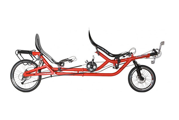 De achterste ligfietser mag tot zo'n 1,85 m. lang zijn, maar voor de voorste ligfietser zijn die beperkingen er niet......