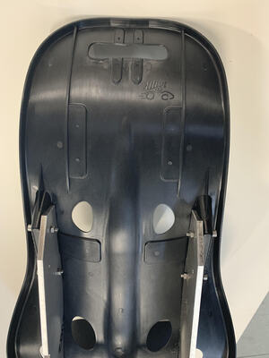 De zitting weegt ±1,9 kg en is gemaakt van kunststof . Oftewel PA 6 met 30 % glasvezel. De productie methode die hiervoor wordt gebruikt is het spuitgieten. Aan de achterzijde van de zitting zitten diverse verstevigings vlakken en 4 stijve "uitsparingen" waardoor hij op vele manieren bevestigd kan worden.