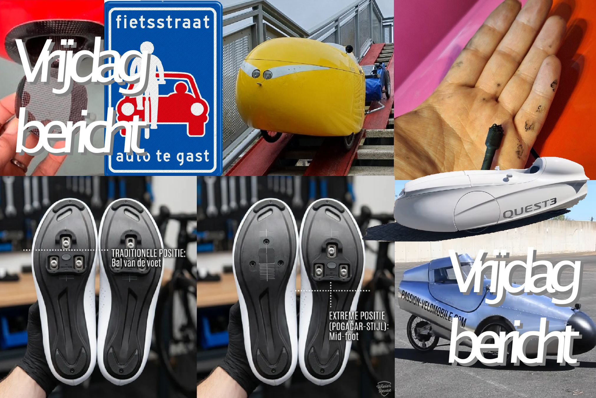 SPEZI, Alleweder, race Aldenhoven, schoenplaatje positie, Rico is onderweg naar Griekenland, accessoires pagina Velomobiel.nl, schrikmoment: USB‑kabel brand, mis met fietsstraten